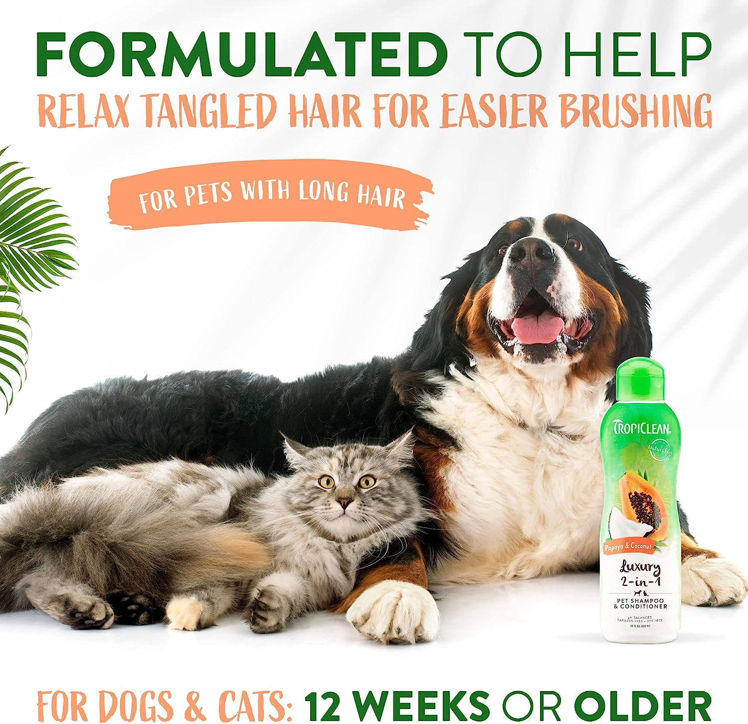 • GENTLE CLEANSING – TropiClean hypoallergenic shampoo for dogs is gentle enough for puppies and kittens with a moisturizing cleanse and a subtle, long-lasting coconut scent.